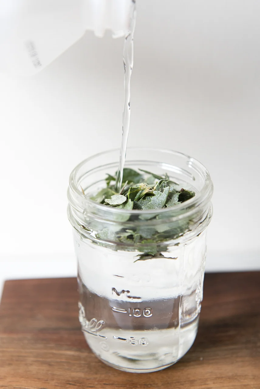 The longer you allow the mixture to steep the stronger it will be. Compost the stems or throw behind a bush to decompose. Add the vinegar until the bottle is almost full.