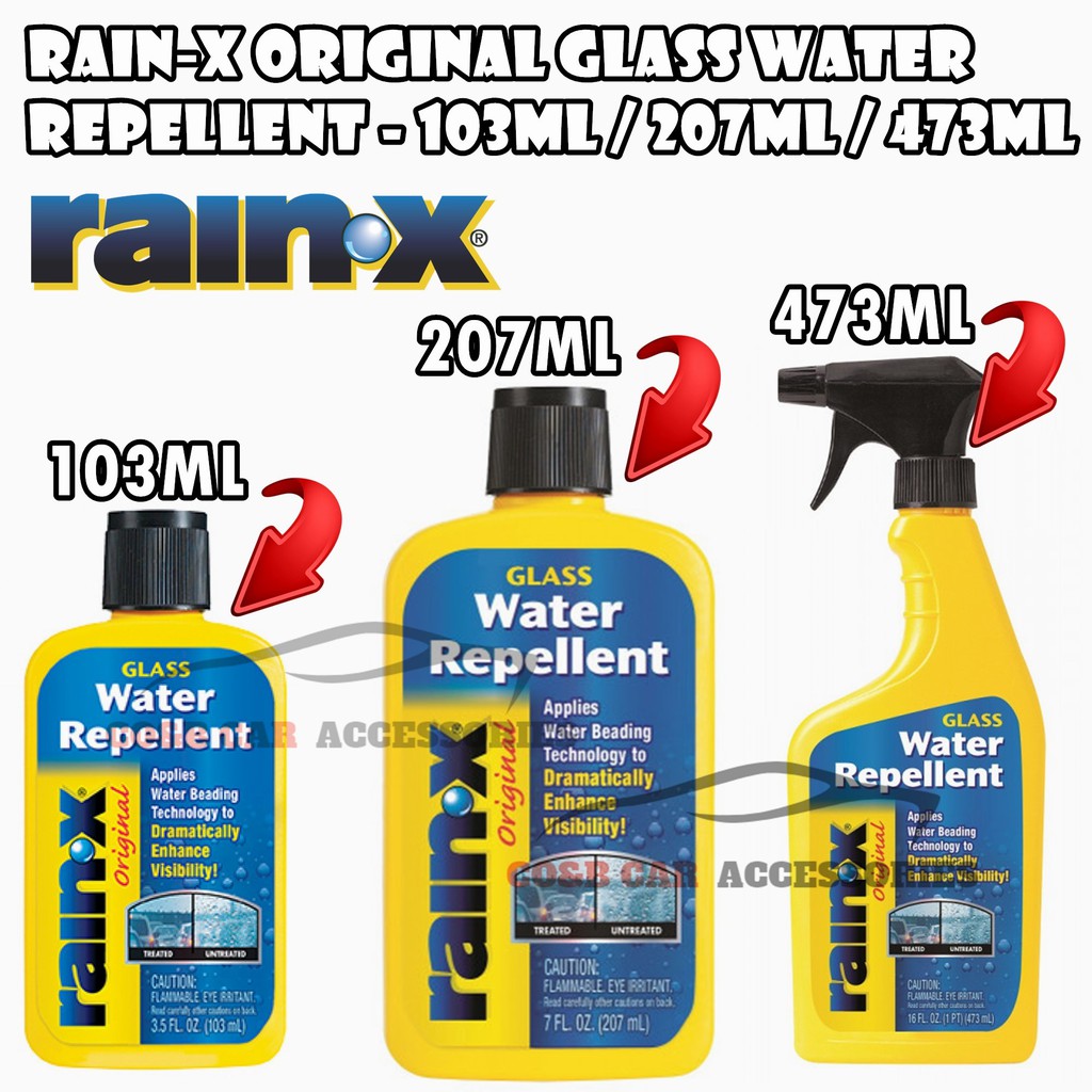 Helps easily remove frost ice salt mud and bugs. All you need to do is apply on the exterior glass and is perfect to repel rain sleet and snow. Try RainX Original Glass Treatment on your glass shower door and home glass windows for more water beading magic. Rain-X Original Glass Treatment dramatically improves wet weather driving visibility. Rain-X Original Glass Water Repellent. Rain-X Original Glass Water Repellent dramatically improves wet weather driving visibility. Rain-X Original Glass Water Repellent. 800002250 Proper shipping name ALCOHOLS NOS. Rain-X helps improve visibility by repelling rain sleet and snow.