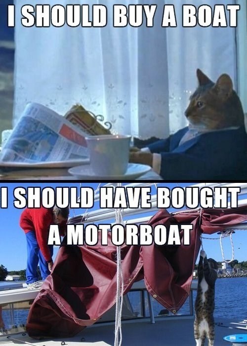 Funny Meme Pictures from all over the internet. 732020 These should I buy a boat cat memes are perfect for when you get a dumb idea from the smallest accomplishment. See more ideas about boat humor humor laugh.